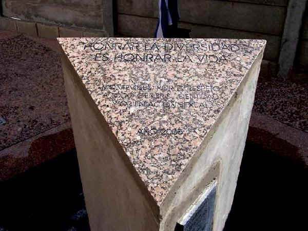 Il cippo, dà il nome alla “Plaza L’iscrizione recita: HONRAR LA DIVERSIDAD ES HONRAR