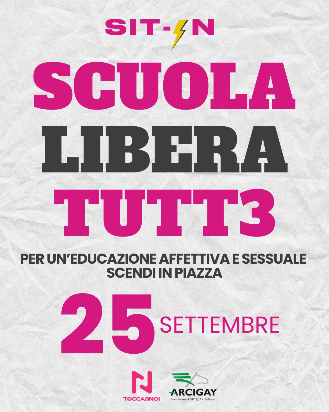 Appuntamento mercoledì 25 settembre, in tutte le piazze d’Italia, con il sit-in “Scuola libera tutt3”.