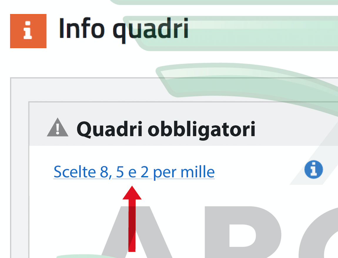 5. Selezionare il collegamento Scelte 8, 5 e 2 per mille dalla colonna Quadri obbligatori
