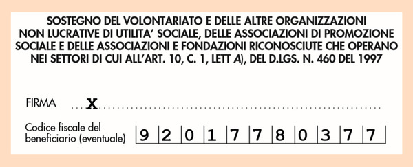 Se non vuoi utilizzare la procedura online, o se utilizzi altri modelli di dichiarazione (Certificazione Unica), basta scrivere il codice fiscale 92017780377 ed apporre la firma nel relativo riquadro così come nell’ immagine di seguito. Dovrai poi inserire il modello, in busta chiusa, recante la dicitura “DESTINAZIONE CINQUE PER MILLE IRPEF”, indicando all’esterno nome, cognome e codice fiscale; il plico può essere consegnato presso un qualsiasi ufficio postale o uno sportello bancario che li accetteranno gratuitamente oppure può essere consegnato presso un qualsiasi intermediario abilitato alla trasmissione telematica quali ad esempio Centri di Assistenza Fiscale (CAF) o commercialisti.