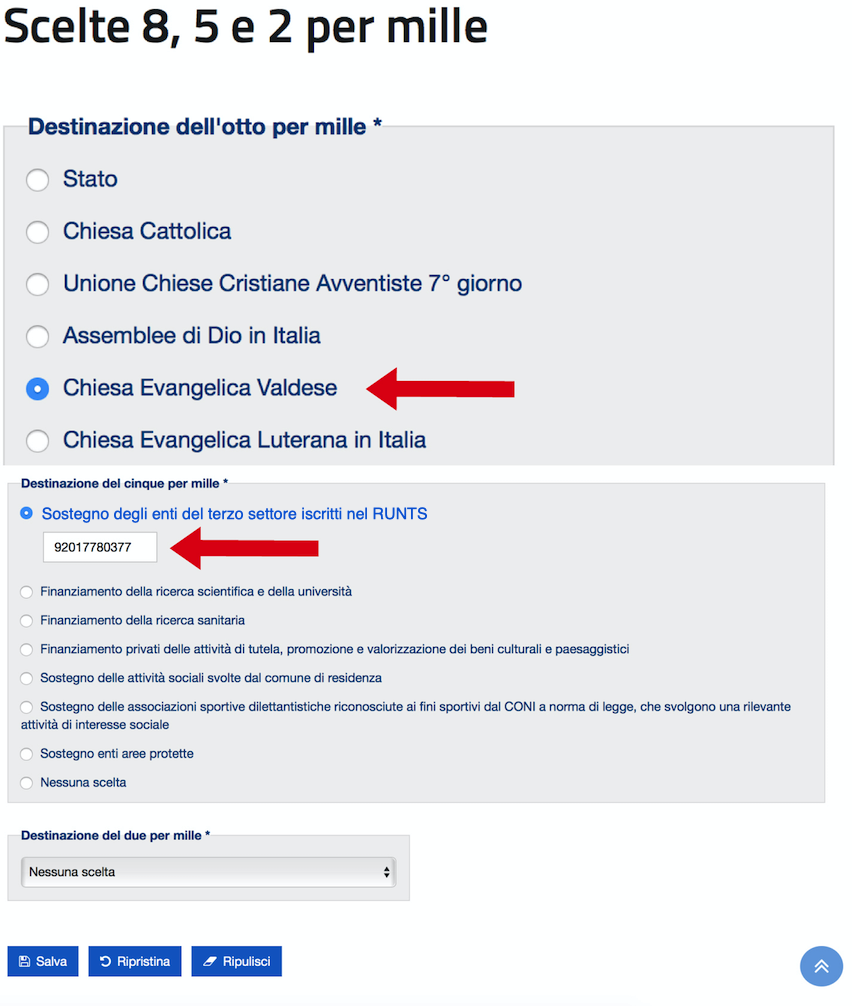 7. Arcigay supporta la scelta dell’ 8 per mille a favore della Chiesa Evangelica Valdese; per farlo è sufficiente selezionare la relativa opzione dal menu.