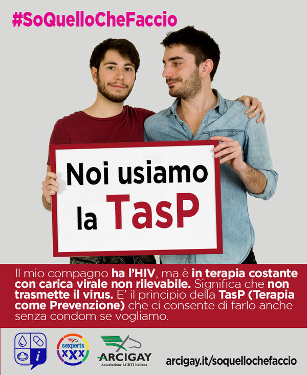 Le persone con HIV che seguono costantemente una terapia efficace e che hanno “carica virale non rilevabile” (ovvero completa non rilevabilità o meno di 200 copie) non trasmettono il virus. E’ il principio della TasP (in inglese “Treatment as Prevention“, in italiano Terapia come Prevenzione). Questo si dice ormai dal 2008 e sono stati fatti ormai diversi studi a conferma. Anche il CDC di Atlanta è recentemente uscito con questa posizione. La carica virale (o “viremia”) è la quantità di virus HIV che una persona con HIV ha nel sangue. Ogni 4 o 6 mesi, normalmente, una persona con HIV fa controlli non solo per assicurarsi che il suo sistema immunitario migliori o sia stabile, ma anche per “contare” questa quantità di virus, che si conta in “copie”. “Non rilevabile” (in inglese “undetectable“) significa che c’è talmente poco virus nel sangue che gli strumenti utilizzati per quantificarlo non riescono nemmeno a contarne le copie, ma la strategia è efficace anche quando si riescono a contare ma sono meno di 200. Solitamente chi assume la terapia correttamente è “non rilevabile” stabilmente dopo pochi mesi dall’inizio della terapia o può avere leggere fluttuazioni di rilevabilità al di sotto delle 200 copie. Chi ha un partner con HIV che prende la terapia correttamente ed è quindi “non rilevabile” può usare la TasP come strategia complementare o alternativa al condom, sapendo ovviamente che anche in questo caso non c’è nessuna protezione rispetto alle altre IST se non si usa il condom.